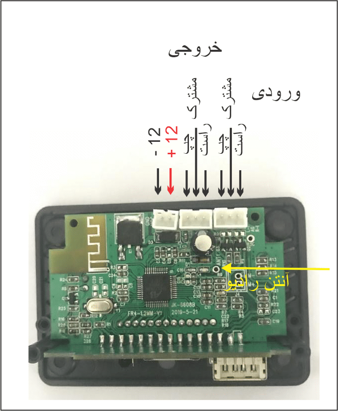 این دستگاه بصورت مستقل قابل استفاده نیست و سیم خروجی صدای آنرا باید به پخش ماشین یا آمپلی فایر متصل نمود.