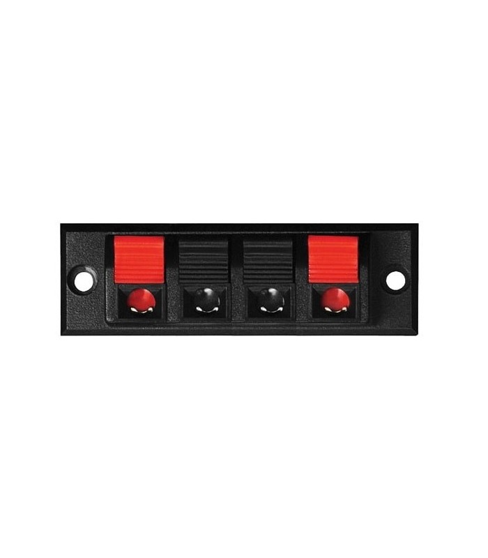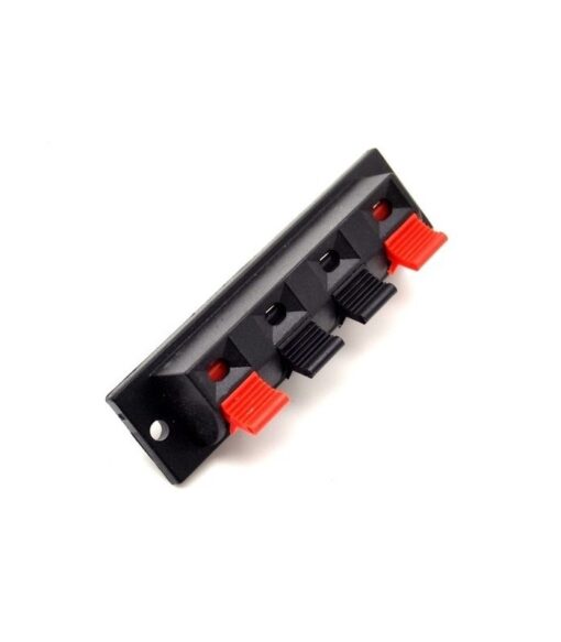 کانکتور بلندگو یا سوکت کانکتور بلندگو ترمینال 4 تایی، ردیفی از نواع اهرم دار فشاری، دارای 4 PIN جهت اتصال سیم بلندگو انواع سیستم صوتی، پخش ماشین، ضبط خانگی، اسپیکر کامپیوتر، سینمای خانگی، آمپلیفایر و… دارای جایگاه پیج جهت اتصال به سطوح گوناگون، 4 اهرم شامل 2 اهرم قرمز قطب مثبت و 2 اهرم سیاه قطب منفی، ابعاد 63*20*15 میلیمتر.