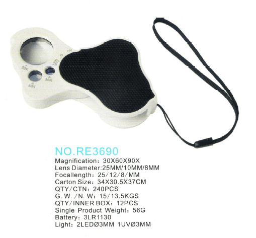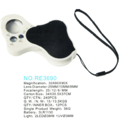 ذره بین جواهری سه لنزه مدل RE3690 با دو چراغ وUV
