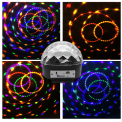 لامپ LED مدل Magic Ball به شکل توپ شیشه ای و بسیار شیک طراحی شده است که همراه با رقص نور زیبا از پخش بلوتوث و فلش مموری با برق 220 ولت مناسب برای چراغانی و جشن ها
