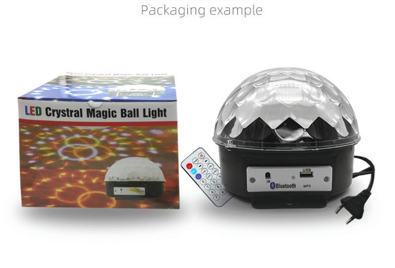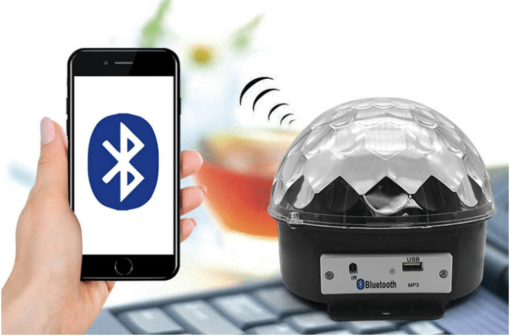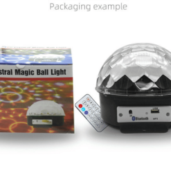 لامپ LED مدل Magic Ball به شکل توپ شیشه ای و بسیار شیک طراحی شده است که همراه با رقص نور زیبا از پخش موسیقی باکیفیت صدایی مناسب نیز برخوردار می باشد. این چراغ نور موزیکال به صورت بی سیم توسط بلوتوث به گوشی موبایل، تبلت و دیگر دستگاه ها به سرعت جفت می شود، همچنین پورت USB نیز برای آن تعبیه شده که با اتصال فلش مموری می توانید به آرشیو آهنگ ها و دیگر فایل های صوتی نیز به راحتی دسترسی داشته باشید. بلندگوهای قدرتمندی برای این لامپ LED بلوتوثی درنظر گرفته شده که صدایی رسا و استریو با بیس عالی را به گوش می رسانند و همراه با رقص نور به خصوص در محیط های تاریک و نورافشانی های دلنشین بر روی دیوار جذابیت آن را دو چندان نشان می دهد. منبع انرژی این چراغ LED بلوتوثی و فلش خور از طریق برق شهری با ولتاژ ورودی 100 تا 240 ولت تامین می شود و یک ریموت نیز همراه آن قرار دارد که مدیریت رقص نور، پخش موسیقی، حجم ولوم و … از راه دور نیز برای کاربر امکان پذیر باشد.