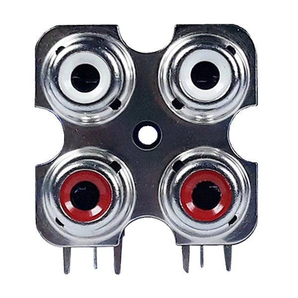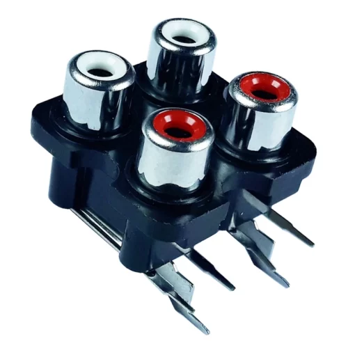 ابعاد : ۲۴×۲۵×۳۰ وزن : ۷ گرم دارای ۴ فیش مادگی RCA جهت ورودی و خروجی صدای استریو و یا خروجی یا وررودی صدای استریوی ۴ کانال