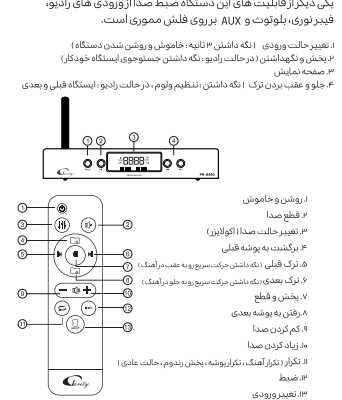 کلاریتی 440-PRیک دستگاه پخش موسیقی و صوت استریو است. این دستگاه، با خروجی 4*40 وات موسیقی و صدا را از طریق بلوتوث، فلش مموری و یا کابل نوری با بالاترین کیفیت پخش کند.